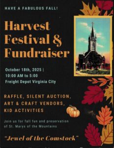 St. Mary’s of the Mountains Harvest Festival Save the Date, October 18th 2025, 10 AM to 5 PM St. Mary’s of the Mountains Harvest Festival Virginia City, NV St. Mary’s Harvest Festival